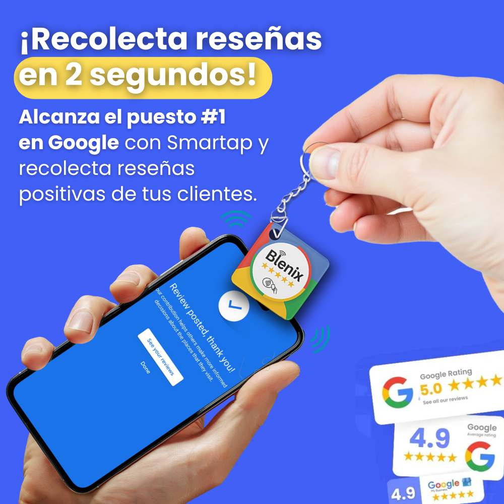Con Blenix, el proceso de obtener reseñas nunca ha sido tan sencillo. En el video, verás cómo en solo unos segundos, el cliente toca la tarjeta con su teléfono y su reseña se agrega directamente a tu página de Google. ¡Es fácil, rápido y te ahorra tiempo valioso!